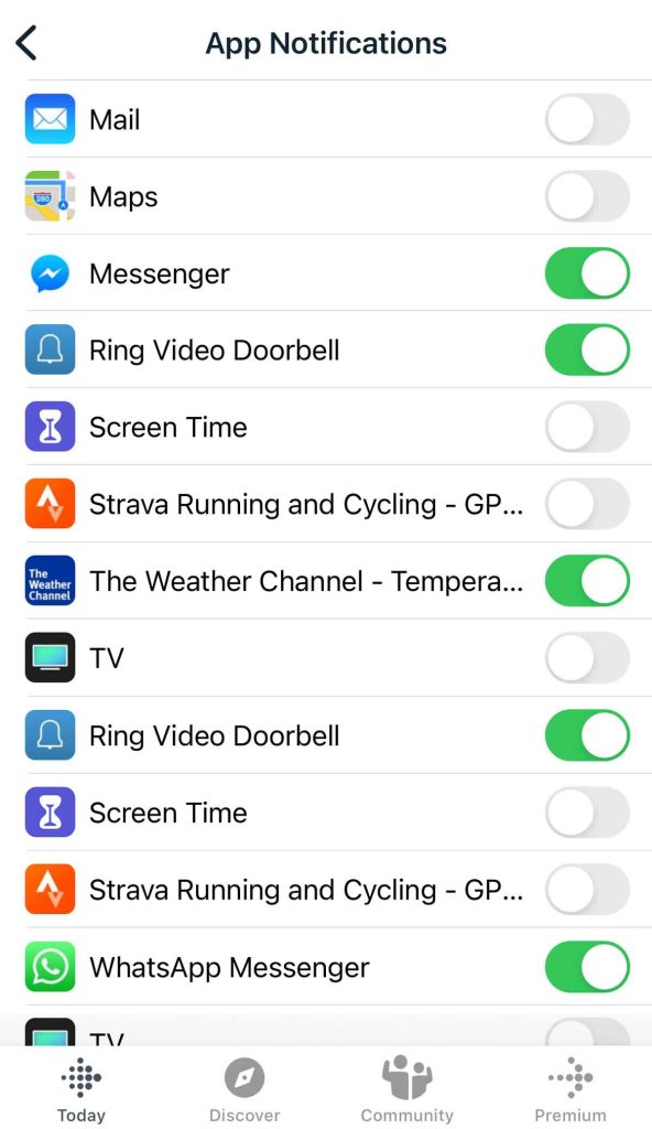 When I go through the list of apps I want to get notifications from Messenger and WhatsApp don’t even show for me to toggle on