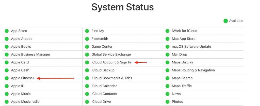 - As always, check Appleās system status report to make sure itās not a server issue on their side. The Apple Fitness+ status should show a green status.