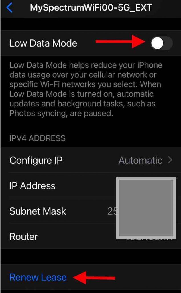 - Switch on the Low data Mode on your Wi-Fi connection and use the āRenew Leaseā option before starting the workout via Fitness+. When low data mode is turned on, automatic updates and background tasks such as photos syncing, etc., are paused, which can help with the overall throughput of the Wi-Fi.