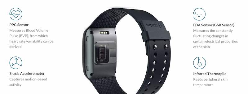 Empatica wearable is another device that has an electrodermal sensor and is being used in different health monitoring and research applications.