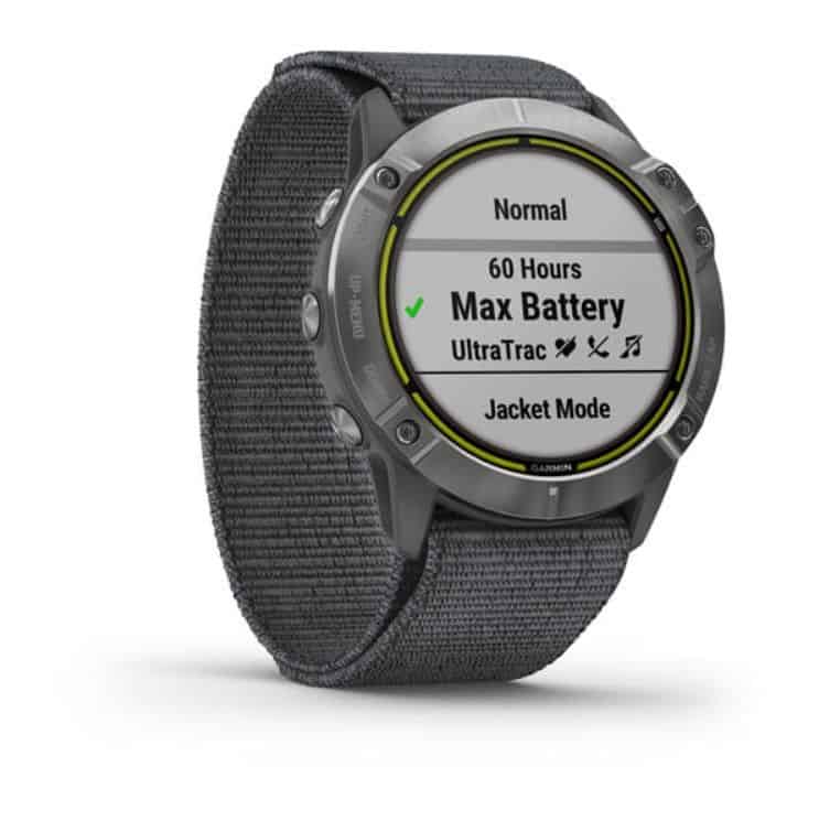 - Garmin Fermin 6 Pro Solar: A middle balance between endurance and functionality. While you won’t get anywhere near the battery life that the Enduro offers, you still get up to 36 days in GPS expedition mode along with 32 gigabytes of storage and the option of installing music streaming apps