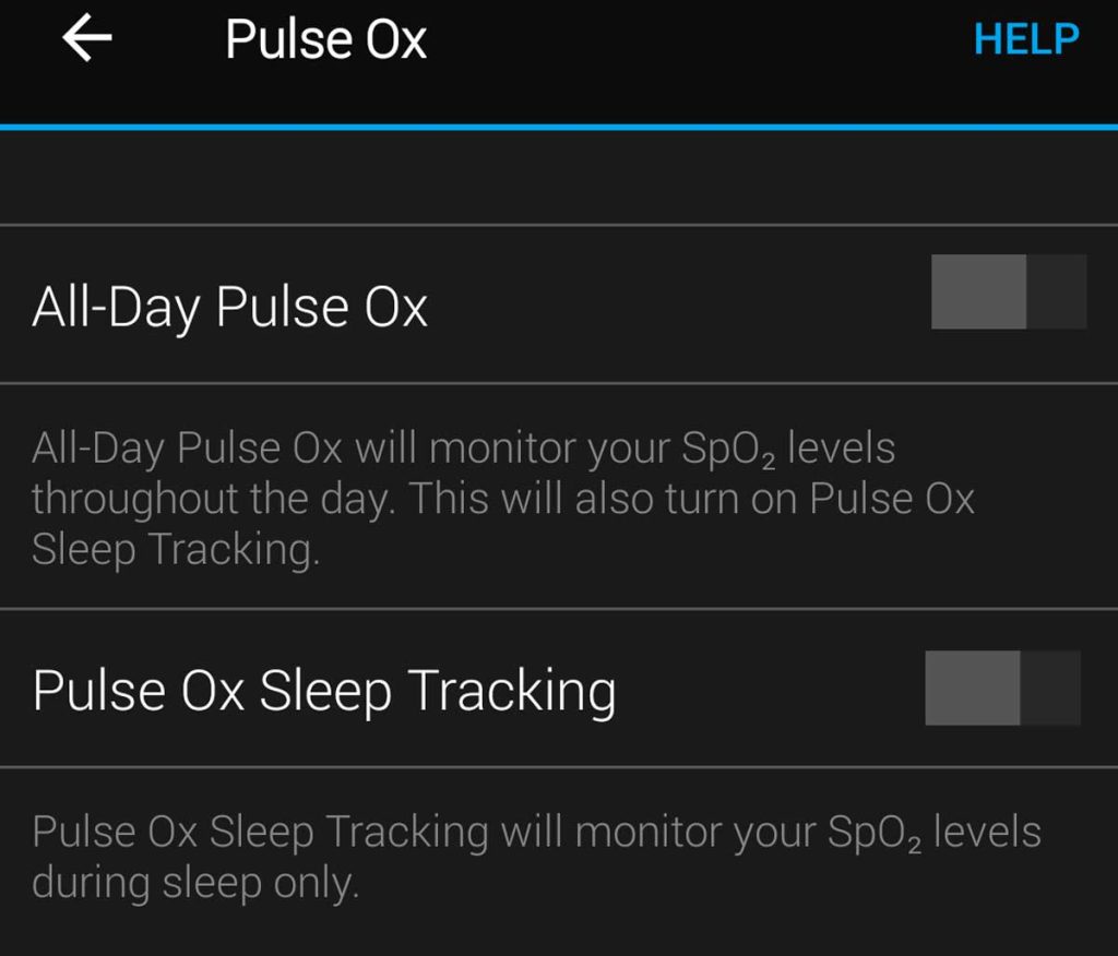 But for those that do, there are some choices: you can turn on Pulse Ox tracking for sleep or use it all day. Both settings impact your battery life and reduce the time needed for charging.