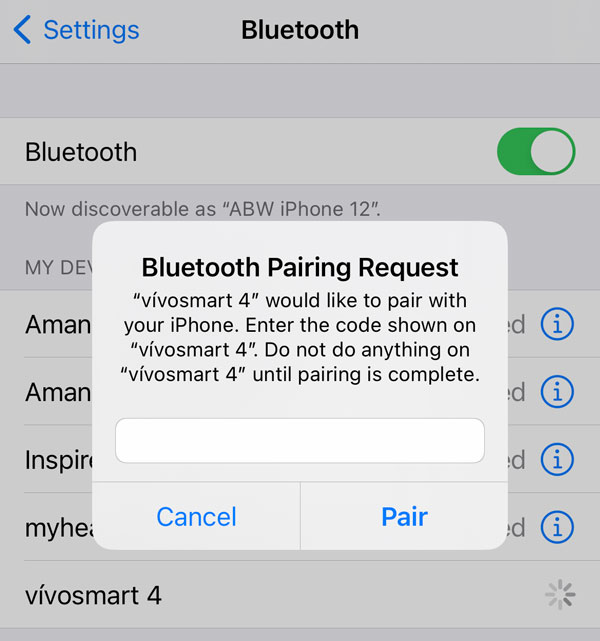 - Enter the pairing code from your Garmin device into the Bluetooth pairing request on your phone.