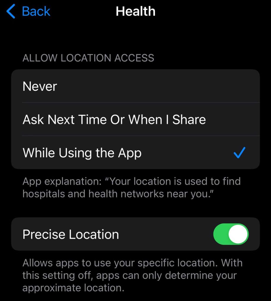 - For iPhones, Google Fit uses the Apple Health location data. Open Settings > Privacy > Location Services > Health and choose While Using the App.