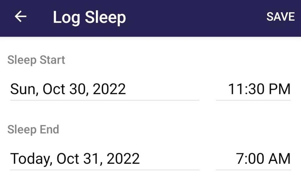 - Enter when you went to sleep, and the time you woke up, then tap Save.