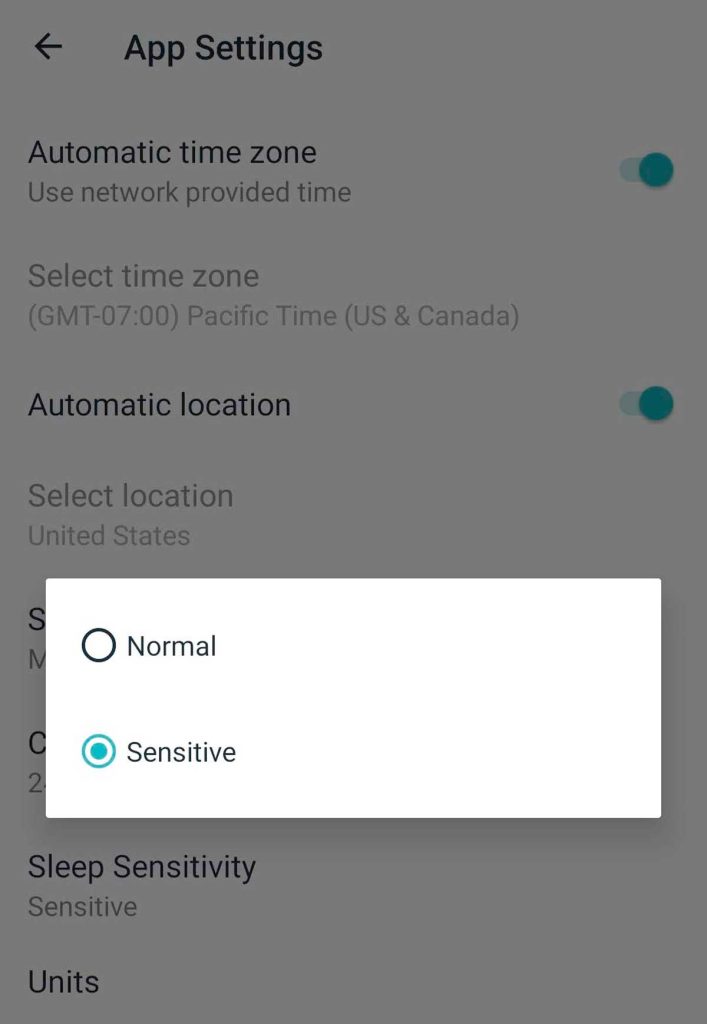 - Tap Sleep Sensitivity and select Normal or Sensitive.