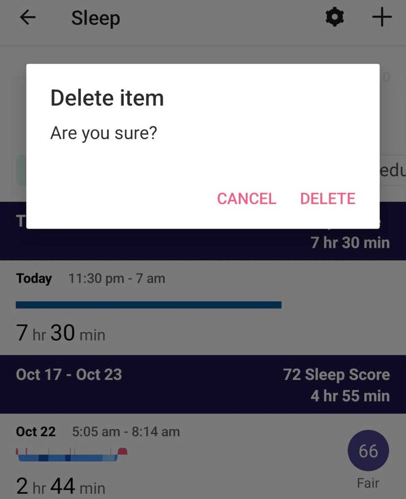 - Delete that sleep log and enter your sleep again.
