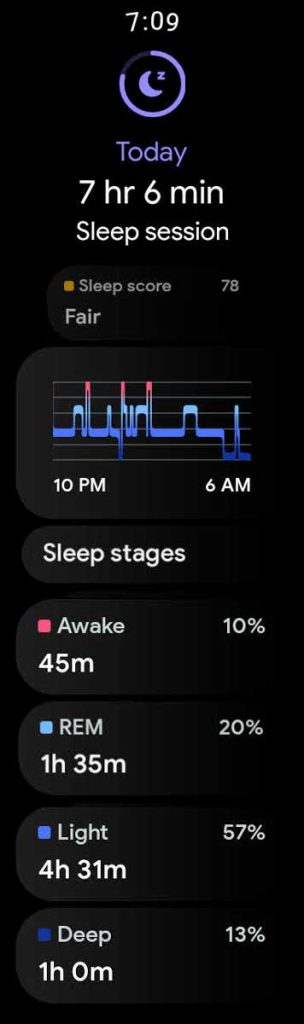 After each night or session of sleep, your Pixel Watch should provide you with a detailed sleep report, showing how much time you spend awake, restless, and asleep, and break down your sleep into light, deep, and REM sleep stages.