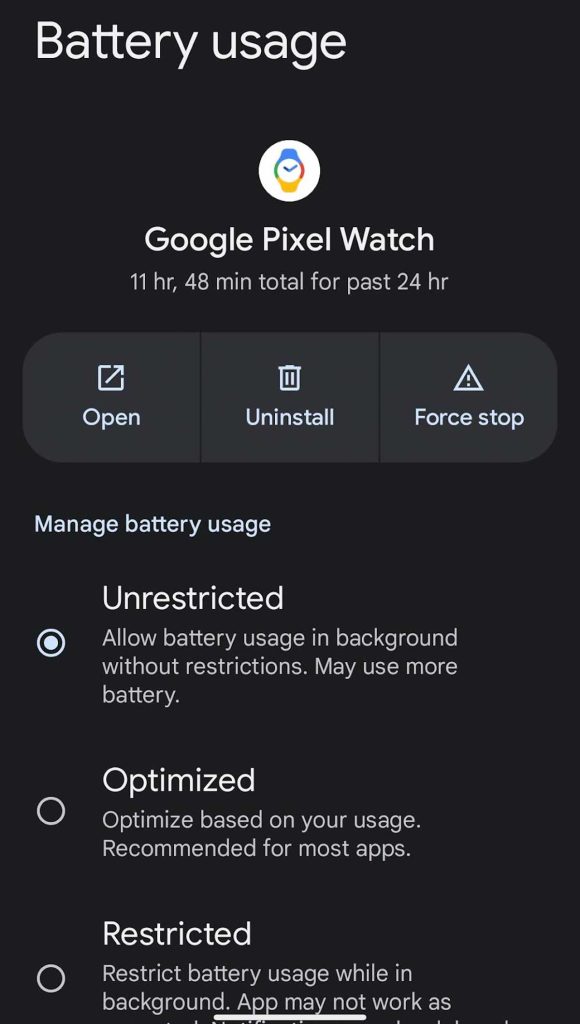 After setting up the Fitbit app and linking it to the Google Watch, you also want to check that these apps run in the background and aren’t restricted.