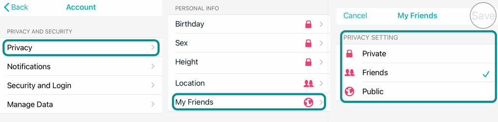 - Under Social & Sharing. Tap Privacy, then My Friends.