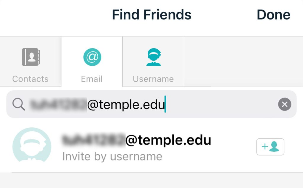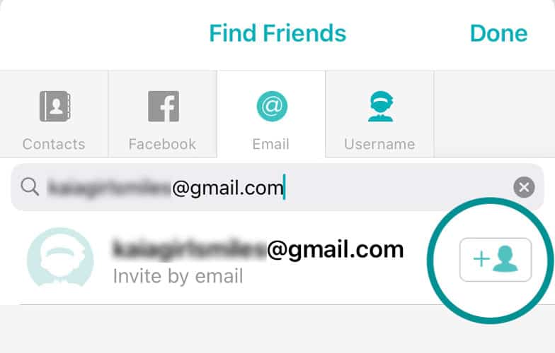 - Tap the + icon next to the email address of the friend you want to add before pressing Done.