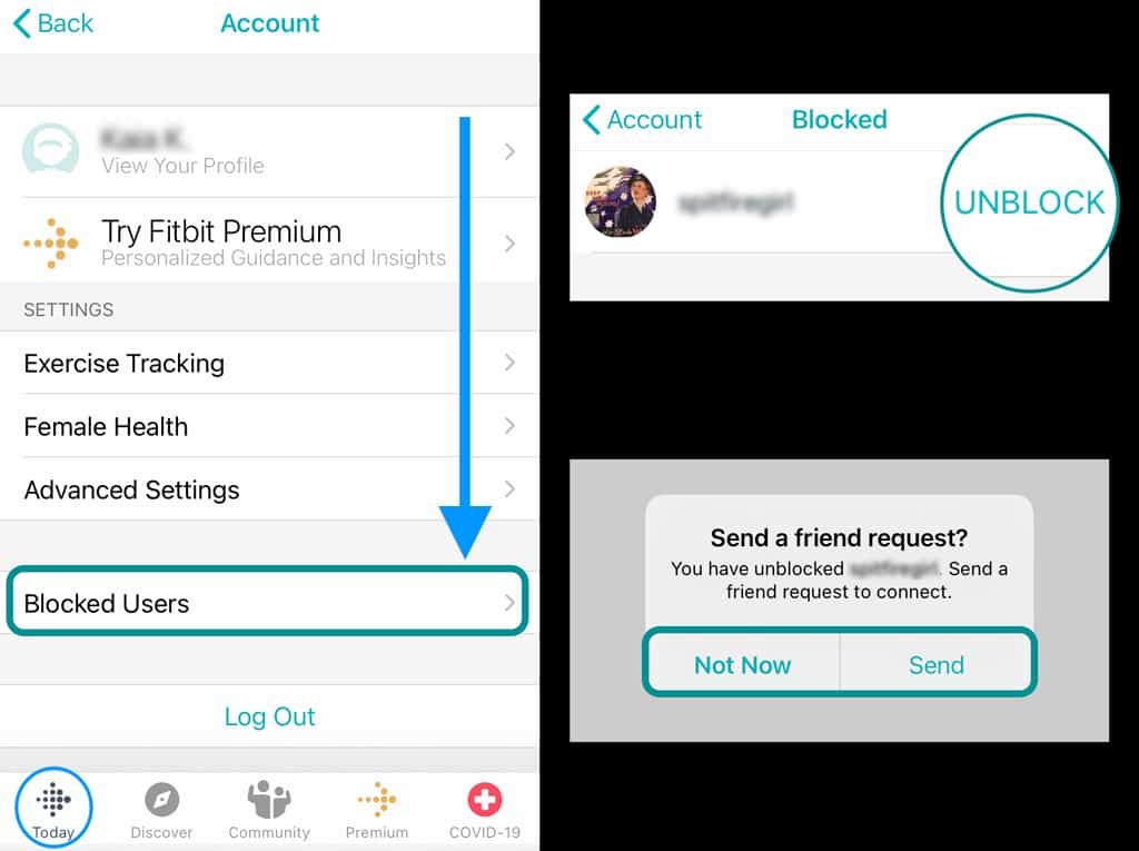 You cannot unblock someone using Fitbit’s website and your account dashboard. You can only block or unblock inside the Fitbit app.
