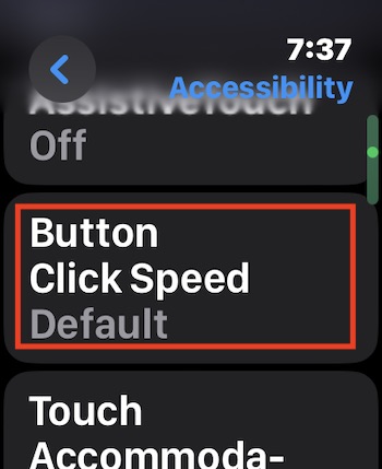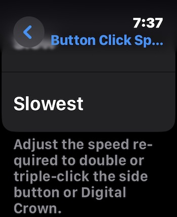 Adjust your preferences from Default, Slow, and Slowest to match your needs. Remember that this speed setting impacts not only your digital crown experience but also the side button of the Apple Watch.
