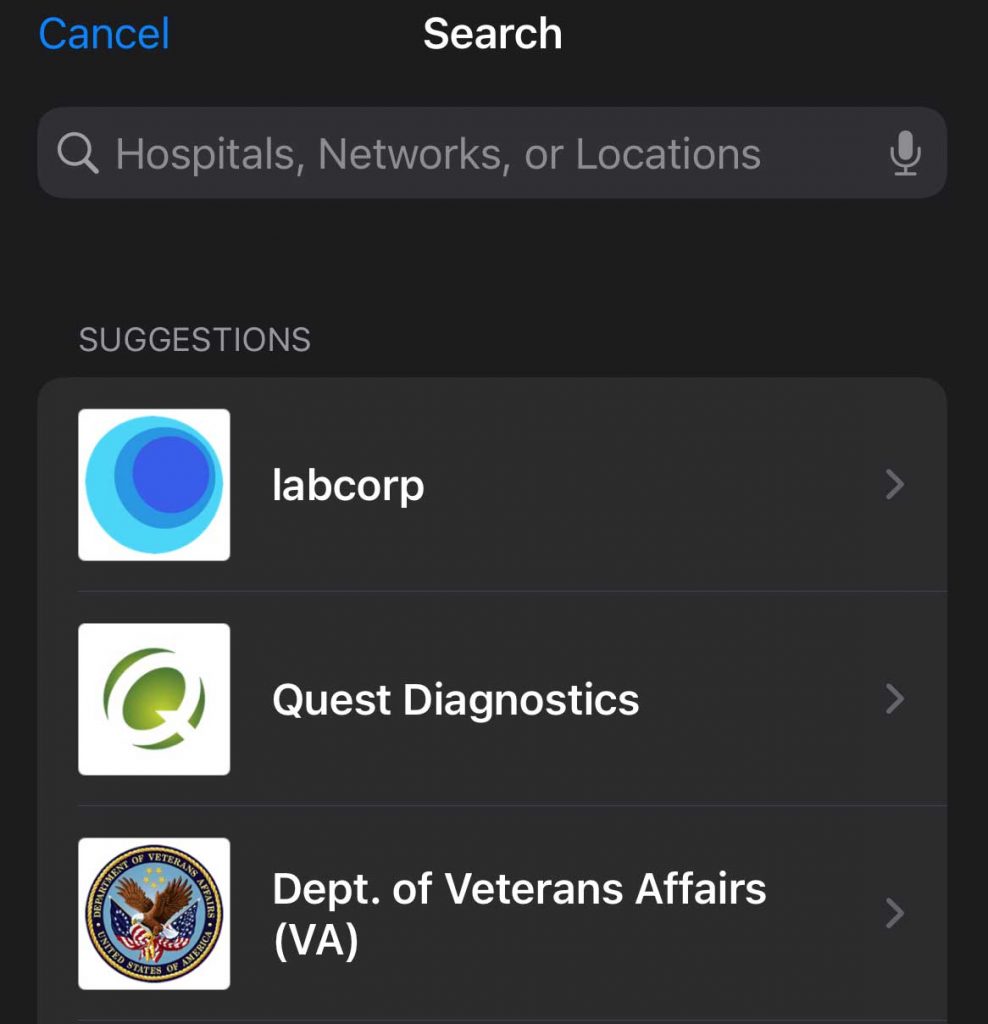 - Scroll the list for all currently supported health providers or use the search bar and type in the name of your clinic, hospital, or healthcare provider. You can also search by location.