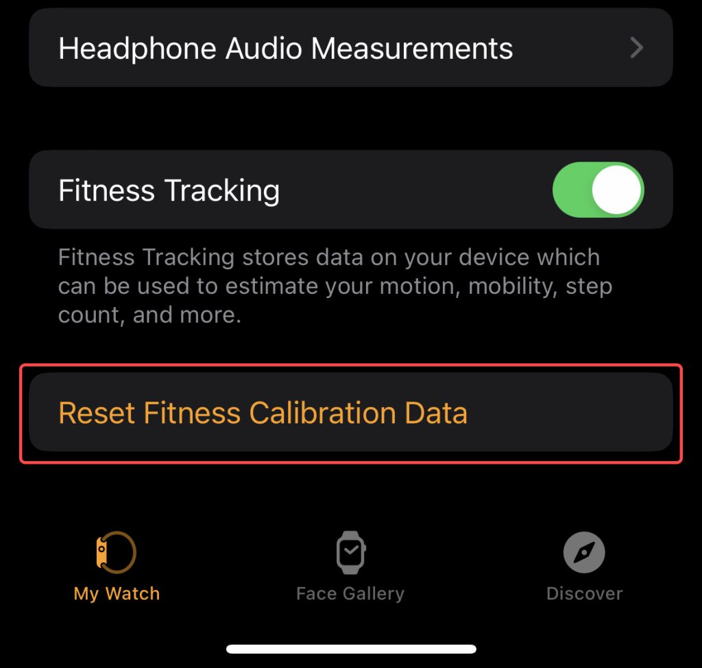 - Finally, tap on Reset Fitness Calibration Data.