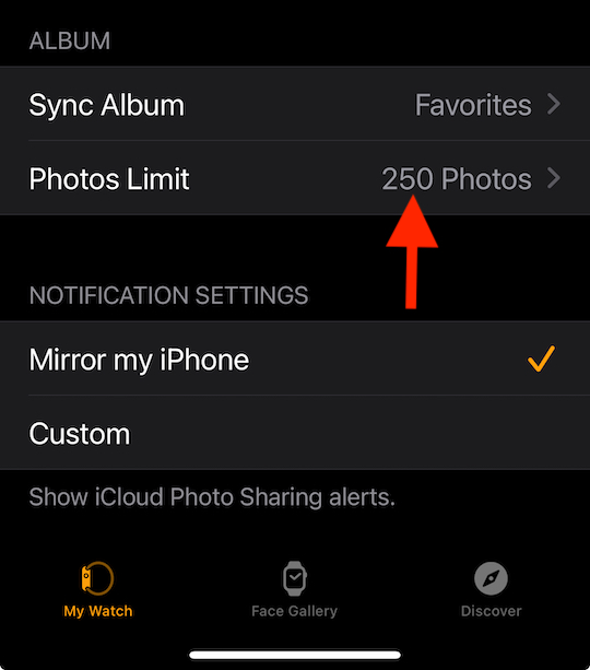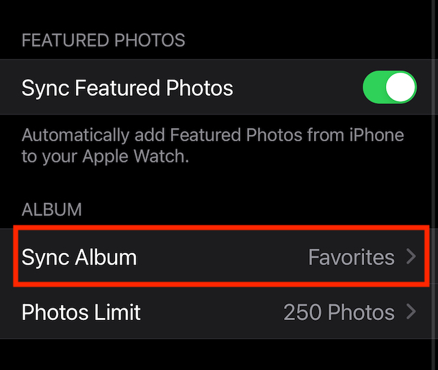 By default, the Photos that are there in your Favorites album on your iPhone will show up on your Apple Watch.
