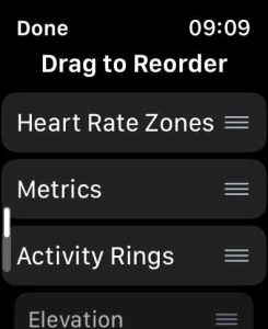 - If you want to reorder the metrics, tap each item and change it to how you want the list to show on your watch.