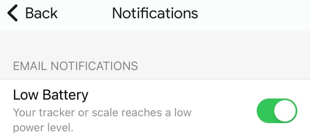The Fitbit app can also send you a notification or email (or both) when it recognizes your low battery level.