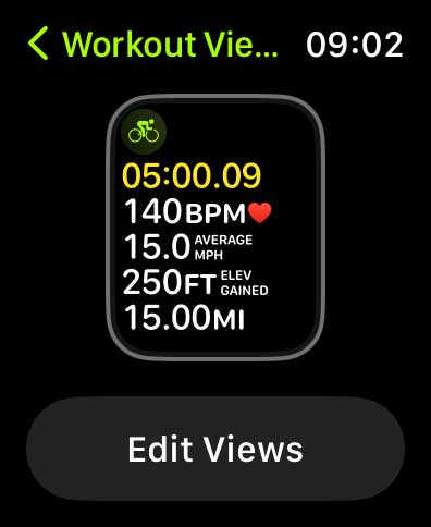 - Tap on Workout Views, followed by Edit Views.