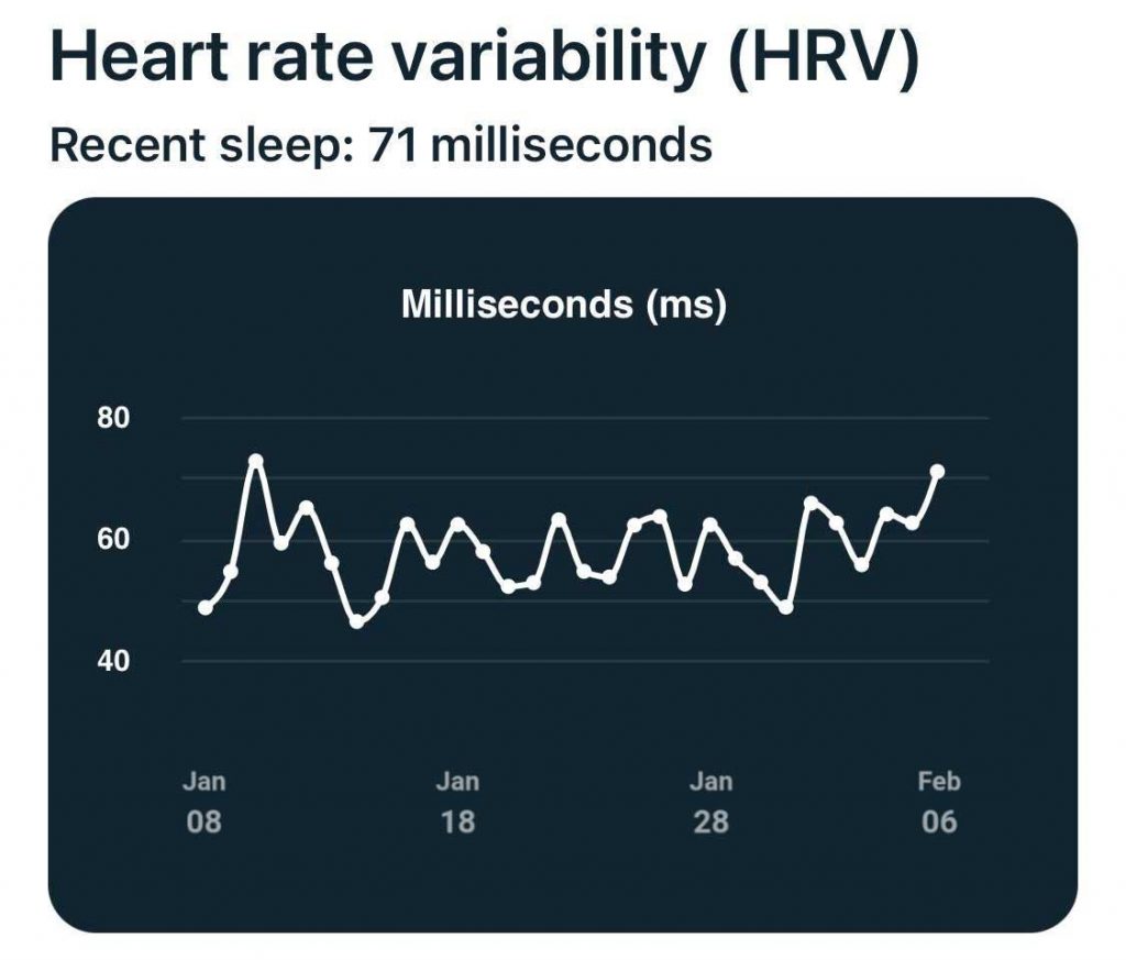- Review the graph of your nightly average heart rate variability (by milliseconds.)