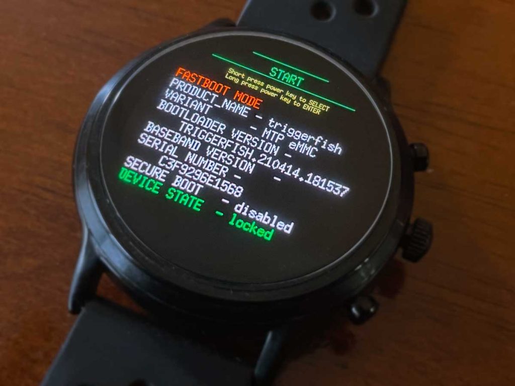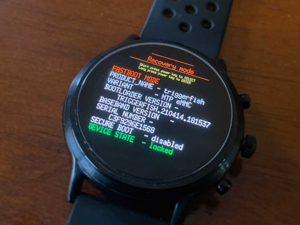 - Wait for Fastboot Mode to appear on your watch’s screen. Release all the buttons.