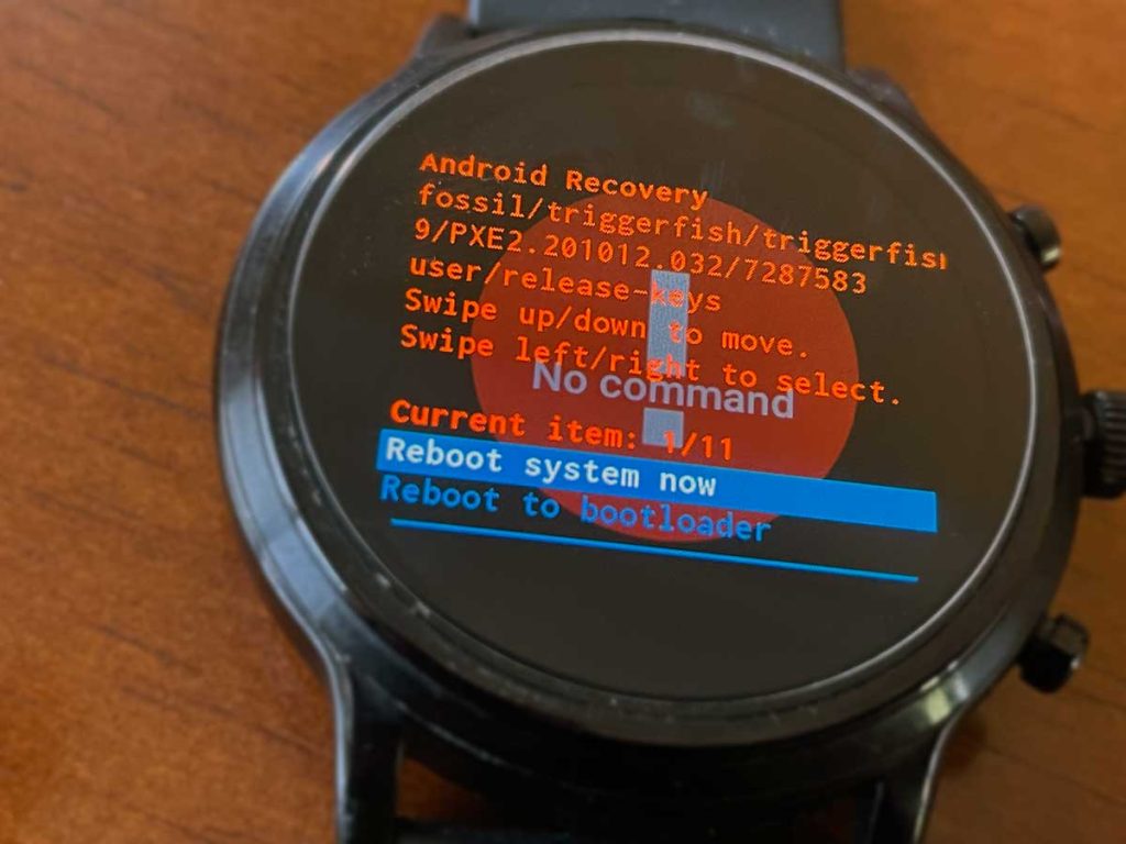 - Once your watch clears the cache partition, swipe left or right on Reboot system now to restart your watch.