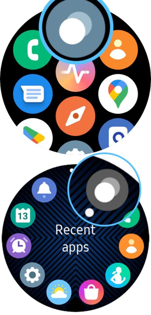 - For Google Wear OS watches like the Galaxy Watch 5 or 4, the home button is at the top.