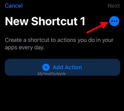 - You may need to first tap on the ‘…’ to add in a name for your shortcut.