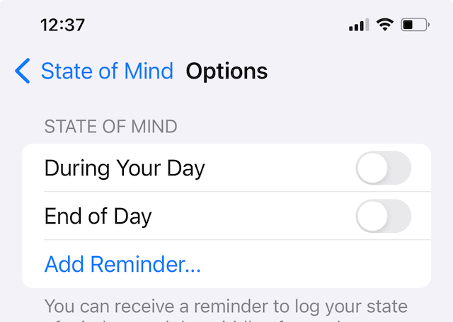 One of the salient features of this new offering is the ability to enter your State of Mind into your iPhone or Apple Watch. Essentially, your iPhone and Apple Watch can be set up to send you reminders during the day to enter “how you are feeling” or mood details.