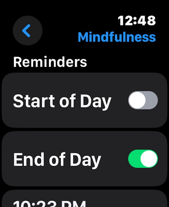 This takes you to the mindfulness settings section in the Watch app on your iPhone. Here, you can set up the various attributes for this feature.