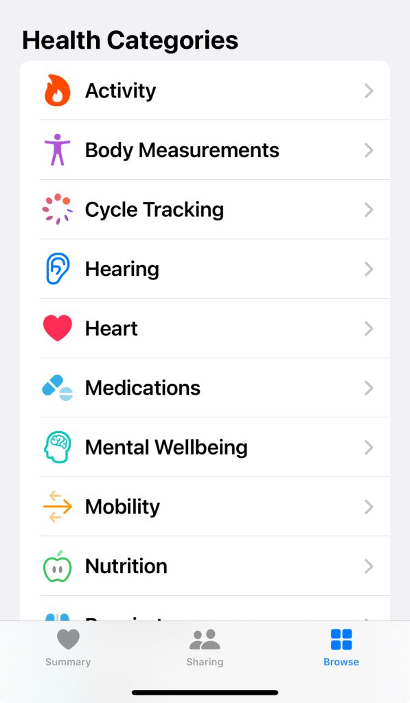 - Open the Health App on your iPhone and navigate to the Browse tab at the bottom.