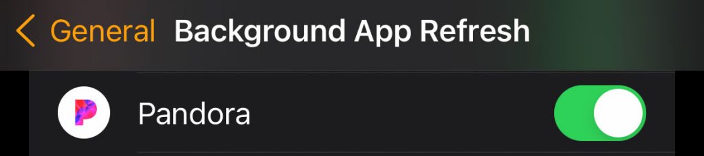 - Check that background app refresh is on for Pandora (Settings > General > Background app refresh.)