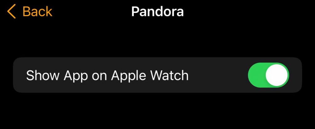- Wait a few seconds and toggle it back on to reinstall the Pandora watch app.