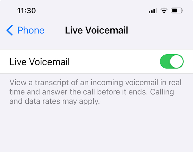 - Next, tap and toggle on Live Voicemail.
