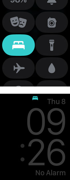 - Your watch’s Control Center highlights the bed icon and shows a bed icon on its watch face.