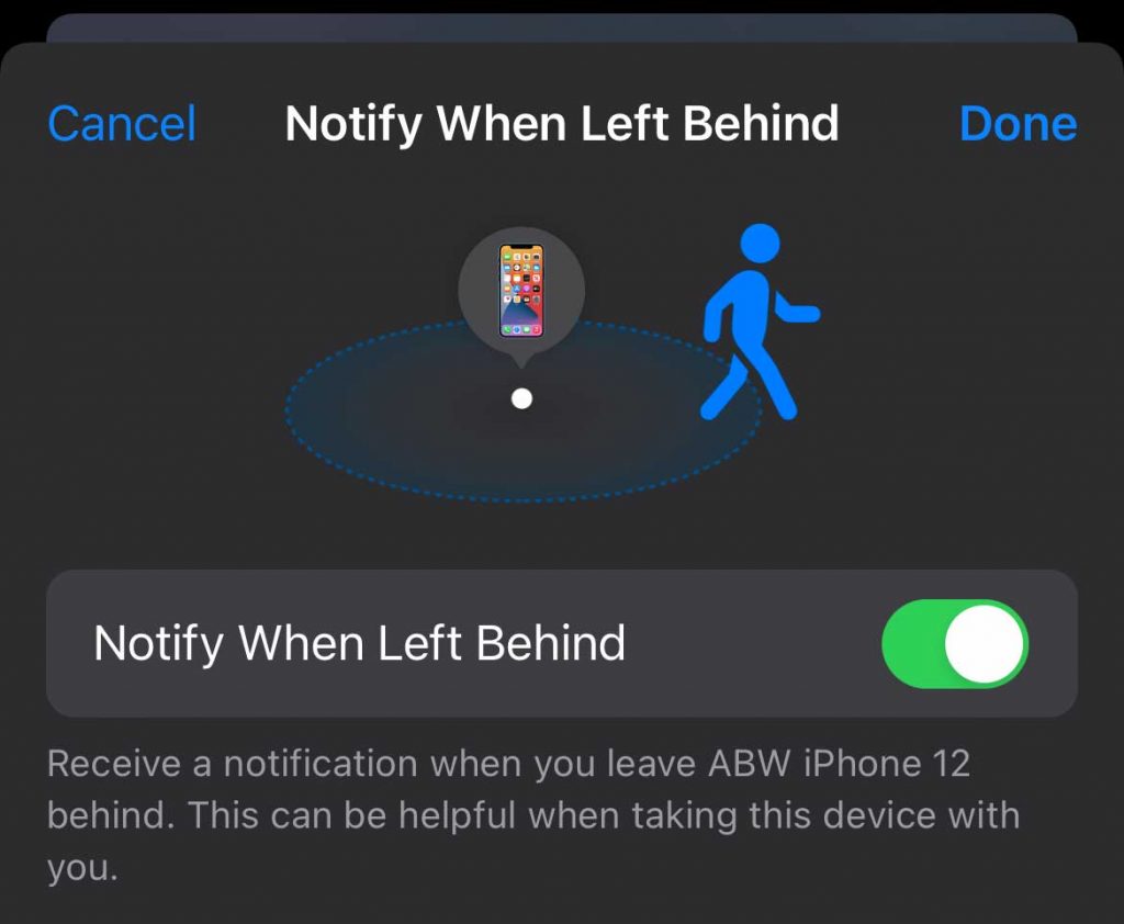 - Toggle Notify When Left Behind off.