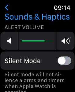 - Adjust the volume by tapping the speaker icons or the current alert volume and adjusting via the Digital Crown.