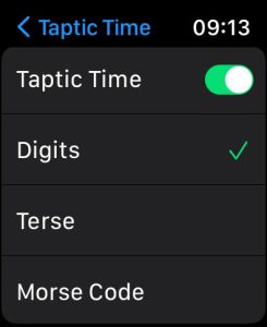 - Morse Code: the watch taps the time out in Morse code digits.