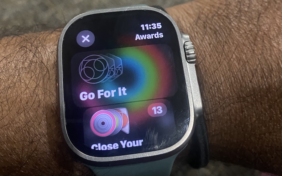 Tap on the Awards complication/icon at the bottom right corner of the screen.