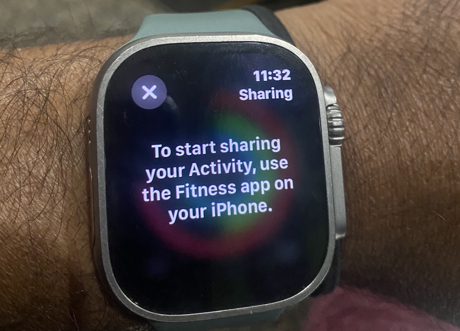 Tapping on it currently reminds you to open the Fitness app on your iPhone to begin sharing. We think this may change in the future and will probably let you directly share activity from your Apple Watch