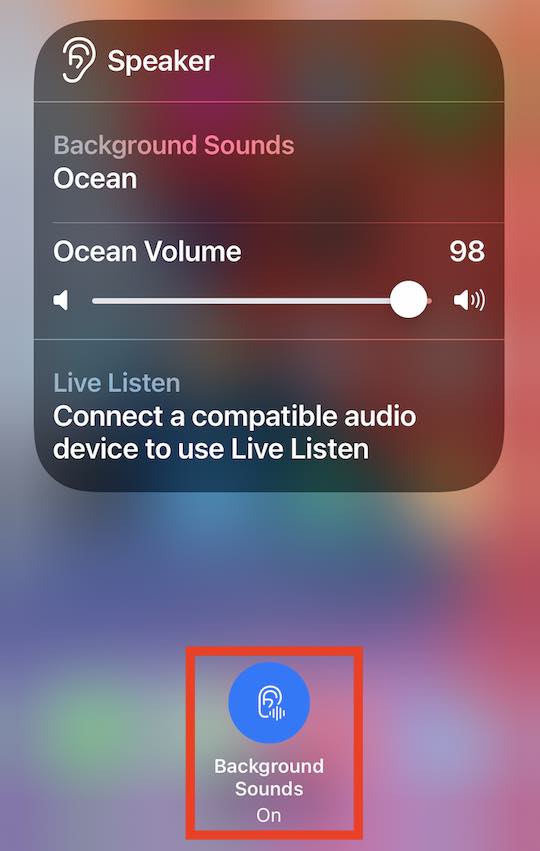 When you want to stop the background sound, open up the control center, tap on ‘Hearing’ control and toggle the background sound to OFF.