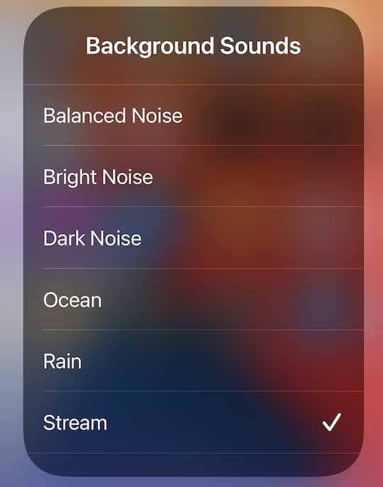 Hopefully, Apple soon adds more variety to its background sound offerings.