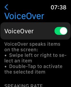 Other helpful settings include adding VoiceOver, Apple’s built-in screen reader that lets your loved one know what’s happening on the watch and helps them navigate it, even if they cannot see or read the screen. Find these settings in Accessibility under the category Vision.