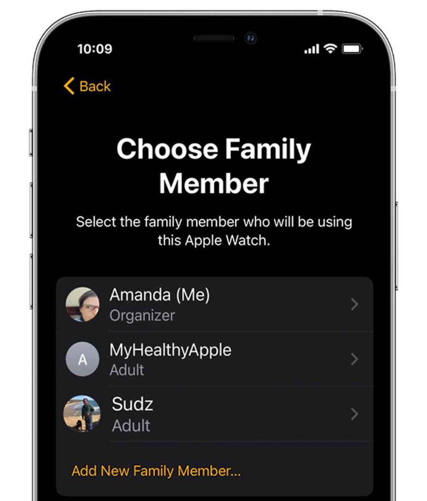 Select the family member from your Apple Family Sharing group. If you didn’t have the chance to do that before, you can add them during this part of the setup process.