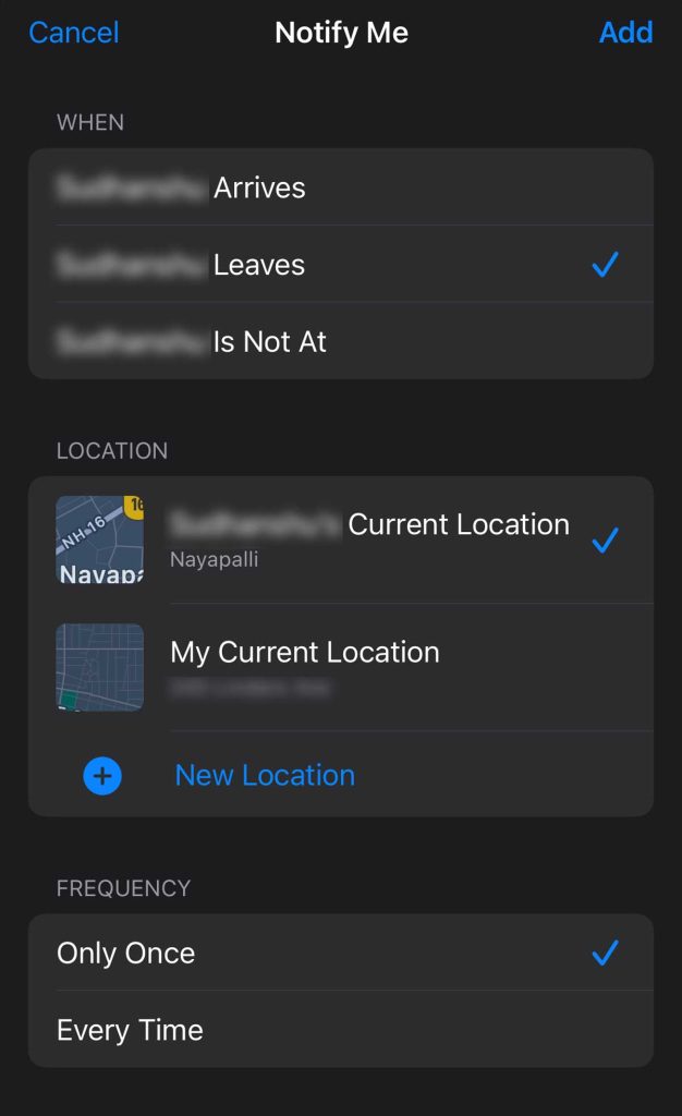 You can also set notifications to alert you when your family member arrives or leaves a particular location, like their home, the doctor’s office, another relative’s home, and other frequently visited places, like the grocery store and more!