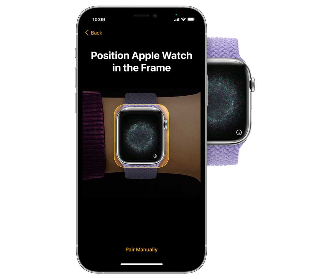 Hold your iPhone over it —make sure you center it in the camera’s viewfinder. An animation should pop up on the Apple Watch. Once you line it up, a message saying “Apple Watch is paired” should appear.