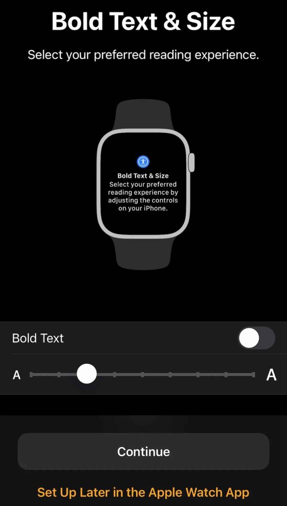 Then, when you or someone else sets up the watch, use the Accessibility features to make the text even larger on-screen.