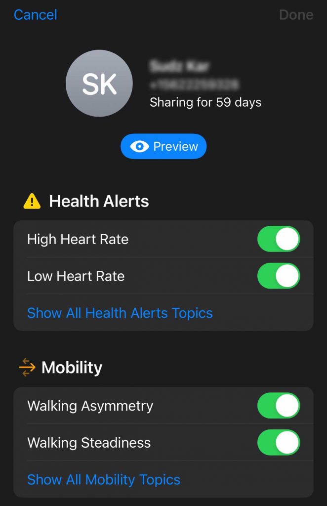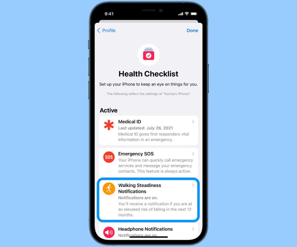 You only need to set this up once. From then on, your family and others get all your walking steadiness notifications and other data.