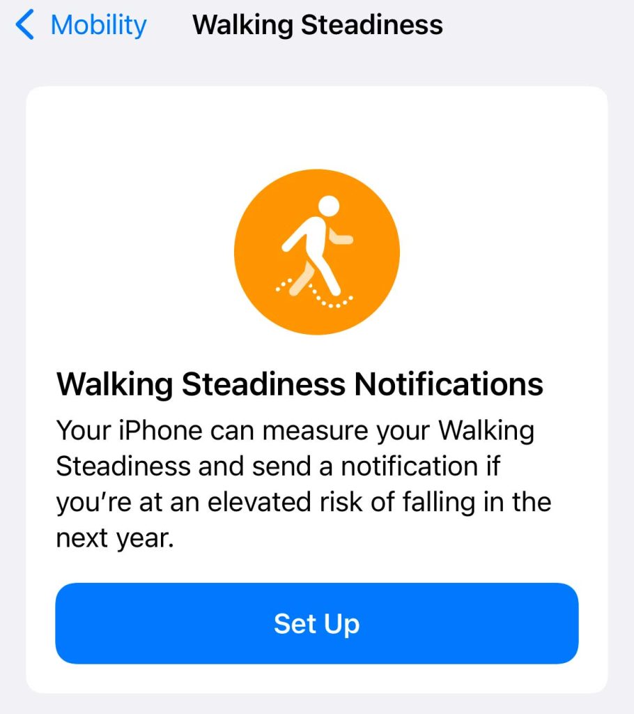 The new Walking Steadiness feature is helpful to the user and especially insightful for primary caregivers of folks prone to accidental falling due to health reasons.