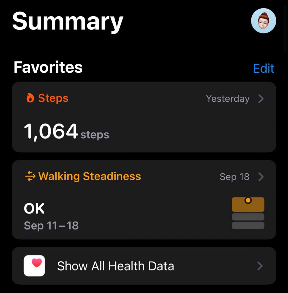 - You can also add Walking Steadiness to your Health app’s Favorites section, so you see it immediately when you open the Health app in the Summary tab.